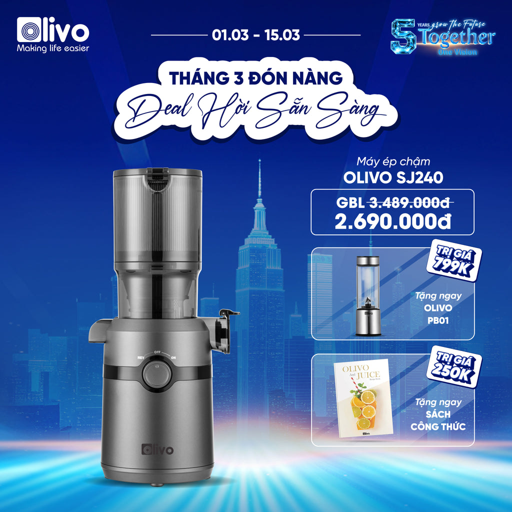 - Thoải mái sáng tạo những ly nước ép thơm ngon, đầy dinh dưỡng cho bản thân và gia đình với OLIVO SJ240.