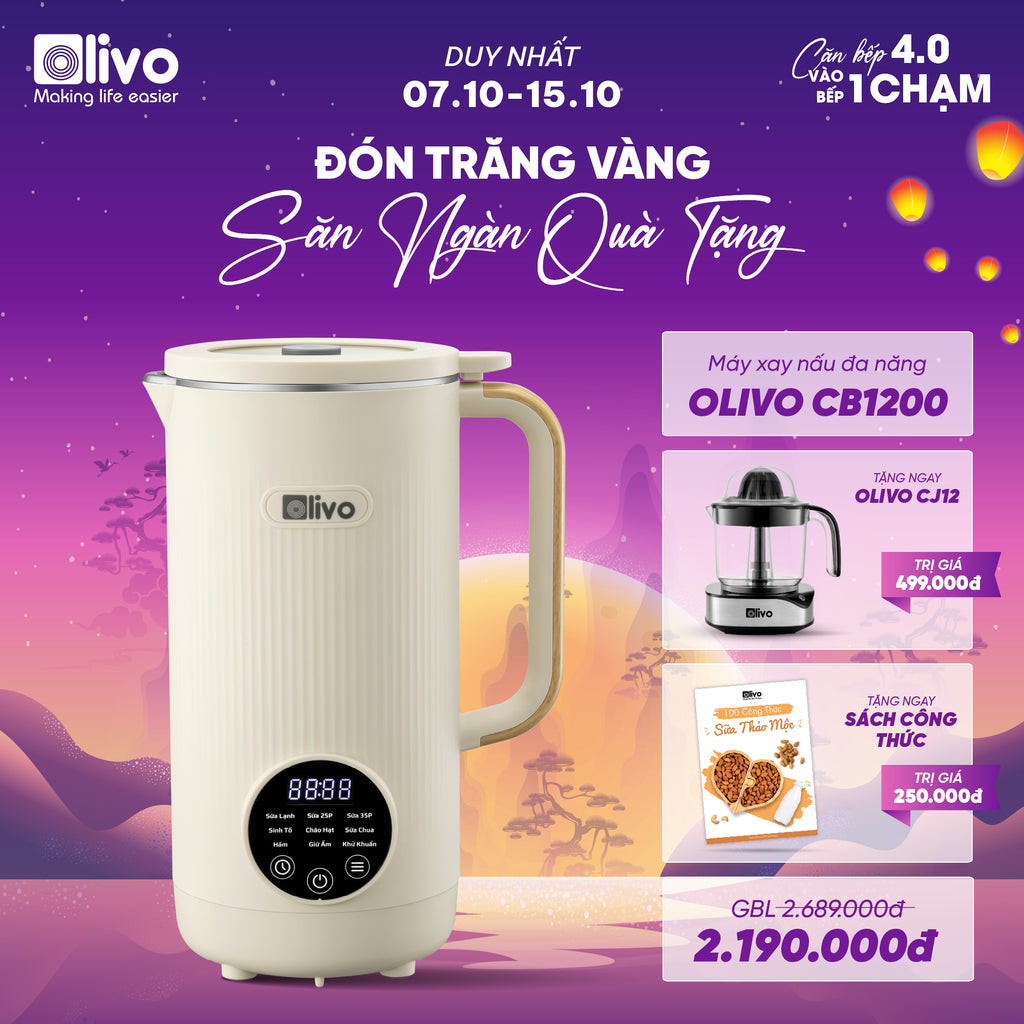 - Với OLIVO CB1200, mọi công đoạn từ xay, nấu, hầm, giữ ấm, làm sữa, làm sữa chua… chỉ gói gọn trong một chiếc máy nhỏ gọn, tiện nghi – người bạn đồng hành đích thực của căn bếp hiện đại.