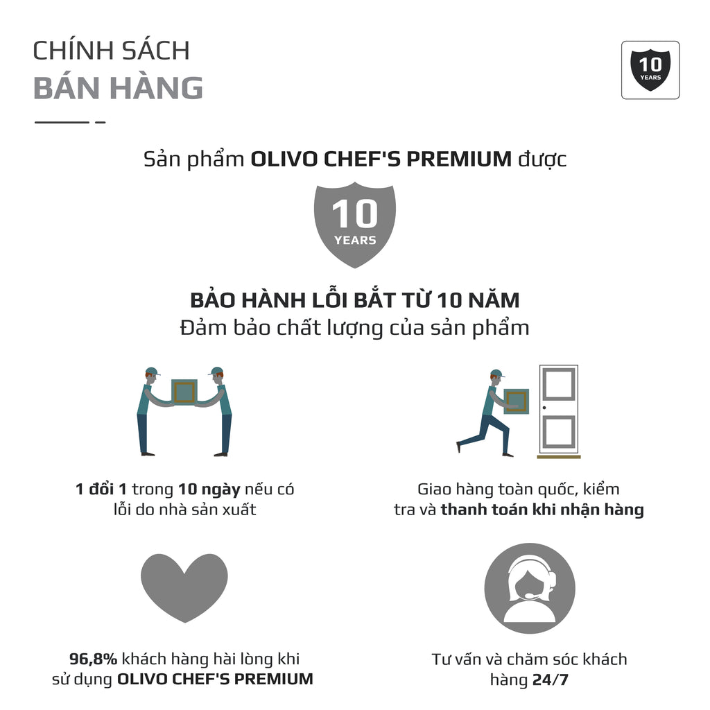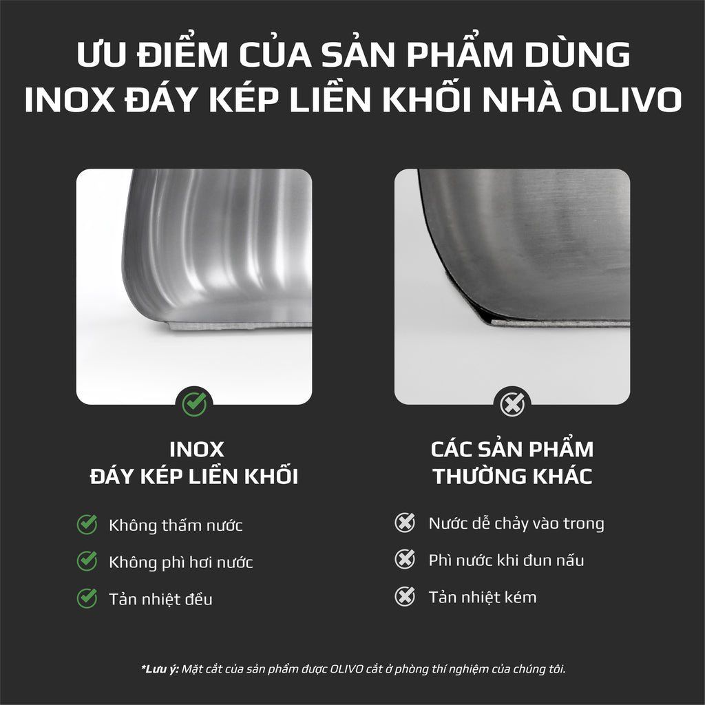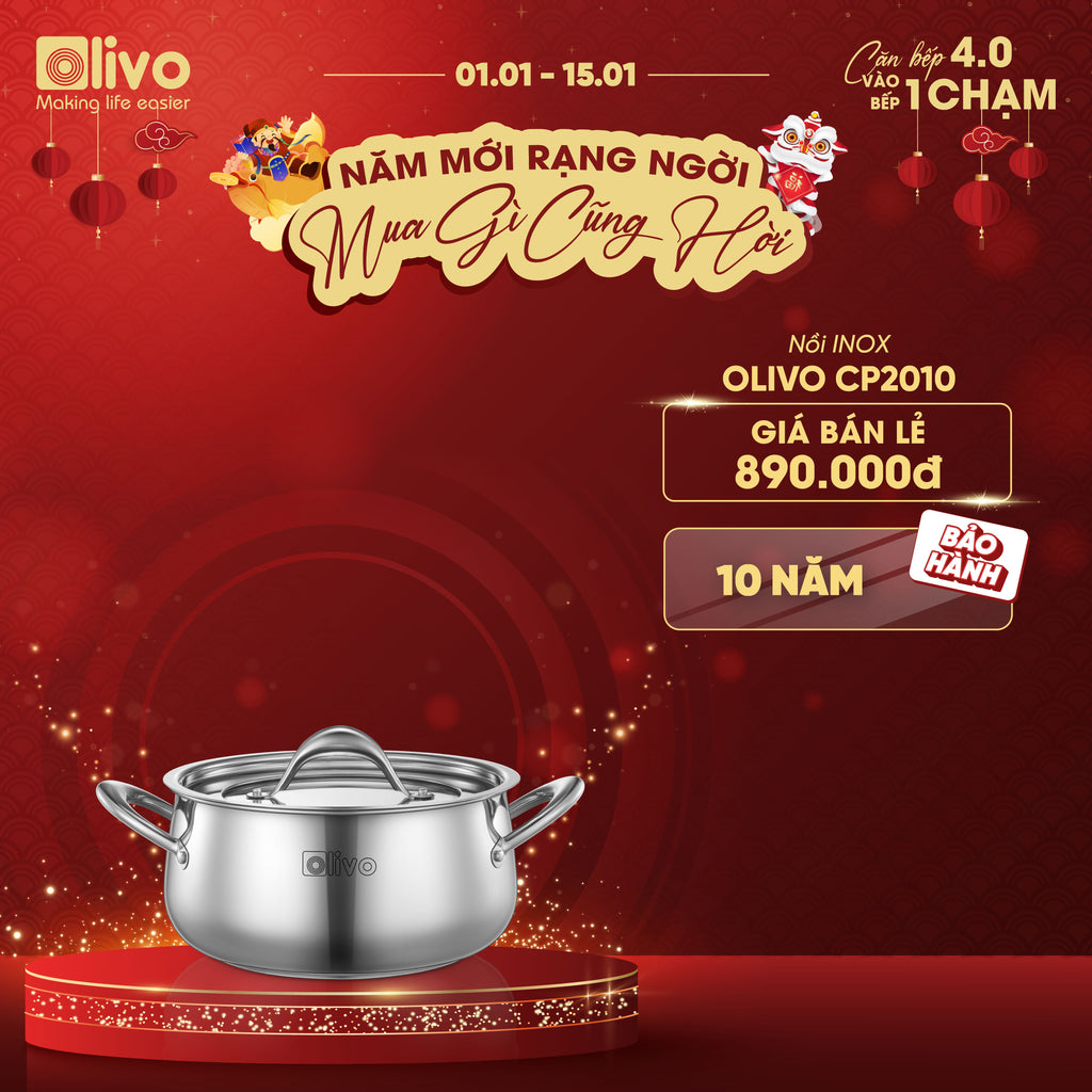 - Từ chất liệu inox liền khối cao cấp, thiết kế dáng tròn tinh tế, đến tính năng tản nhiệt đều, đa dạng kích thước, bộ nồi inox OLIVO Chef’s Premium không chỉ là dụng cụ nấu ăn, mà còn là biểu tượng của phong cách sống hiện đại, nâng tầm trải nghiệm nấu nướng và chăm sóc sức khỏe cho gia đình Việt.