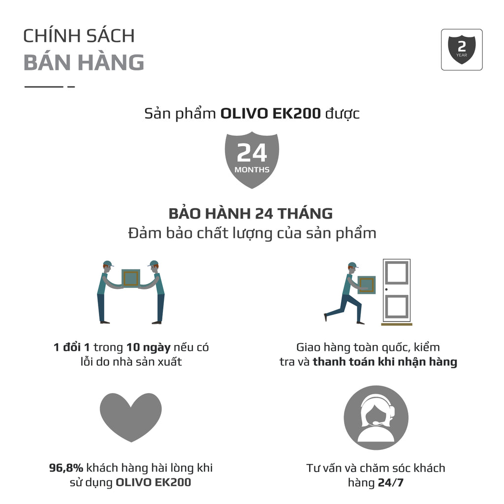 - Với những chi tiết này, OLIVO EK200 vừa đảm bảo an toàn tối đa, vừa mang lại trải nghiệm tiện lợi và thoải mái cho mọi gia đình.