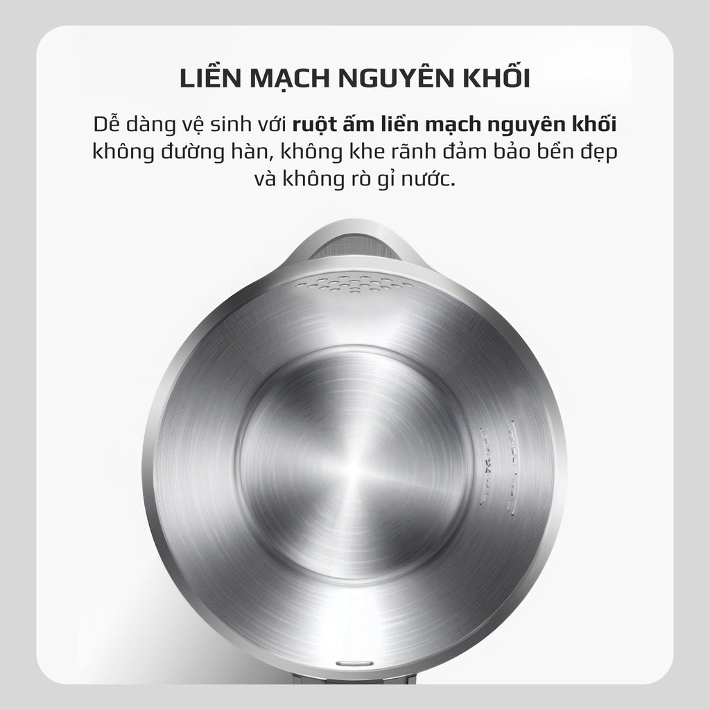 - Ruột ấm liền mạch nguyên khối không đường hàn, không khe rãnh đảm bảo bền đẹp và không rò gỉ nước.