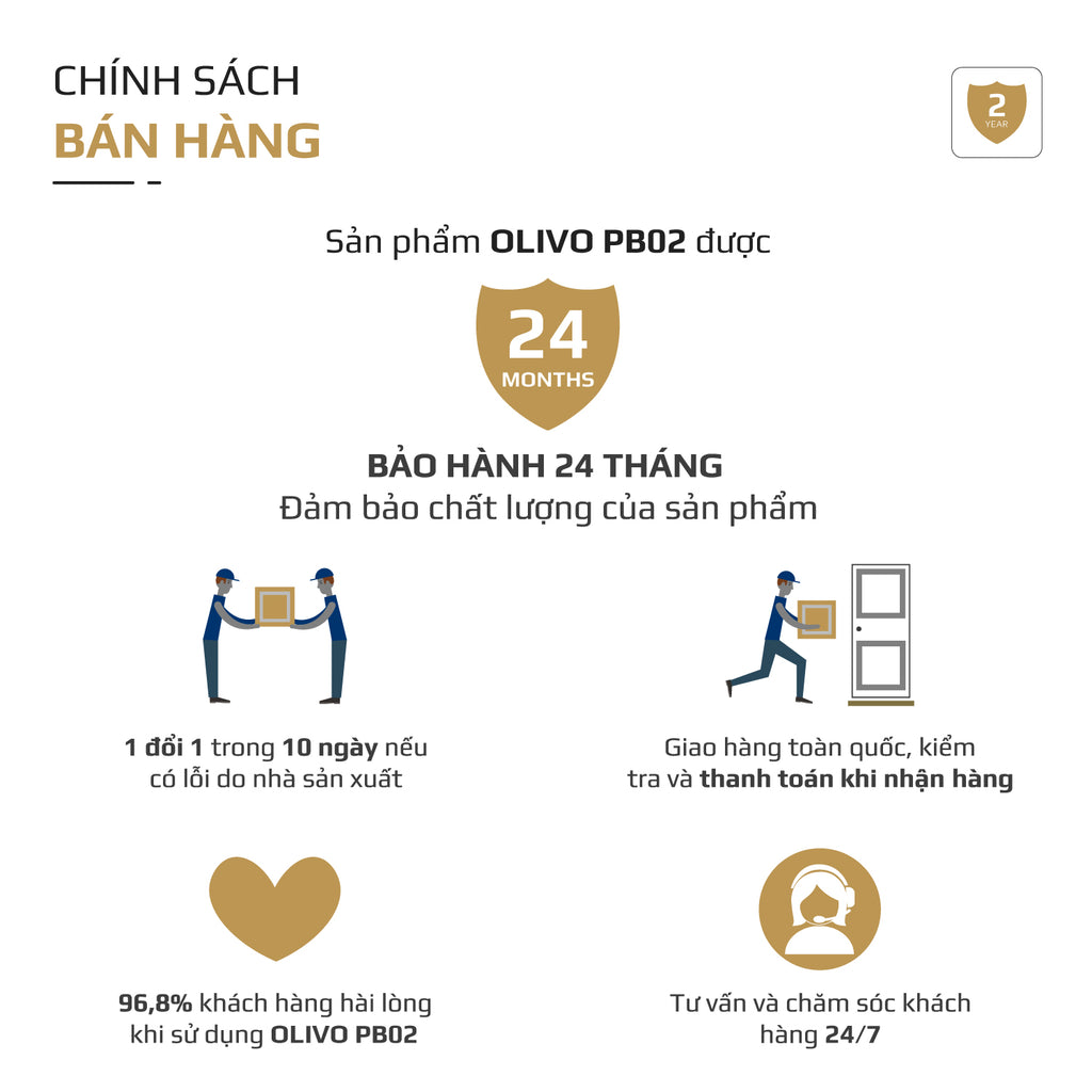 OLIVO PB02 chỉ khởi động khi tất cả bộ phận đã được lắp đúng và khớp hoàn toàn. Điều này giúp ngăn ngừa tình trạng các bộ phận chưa được lắp đúng vị trí, đảm bảo an toàn tuyệt đối cho người sử dụng, đồng thời bảo vệ động cơ và tăng tuổi thọ sản phẩm.
