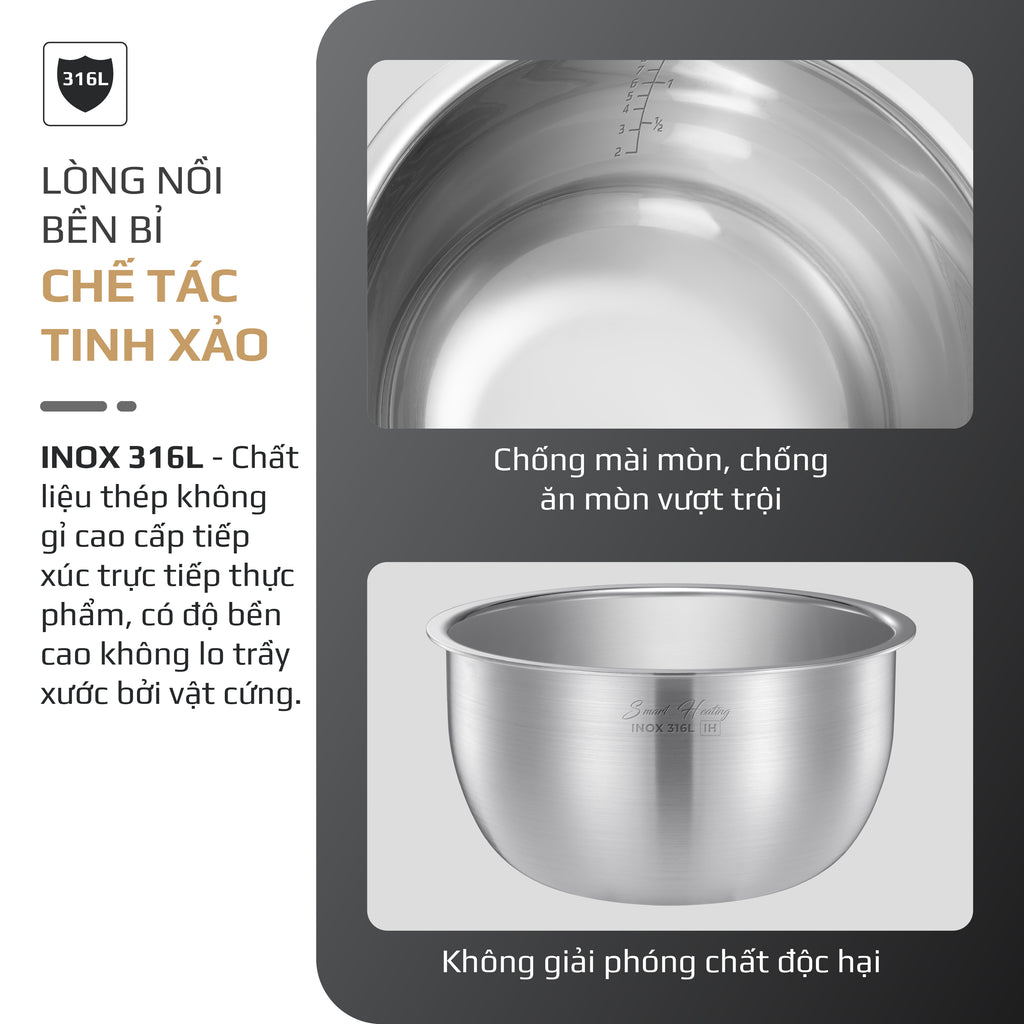 1. LÒNG NỒI INOX 316L CAO CẤP AN TOÀN