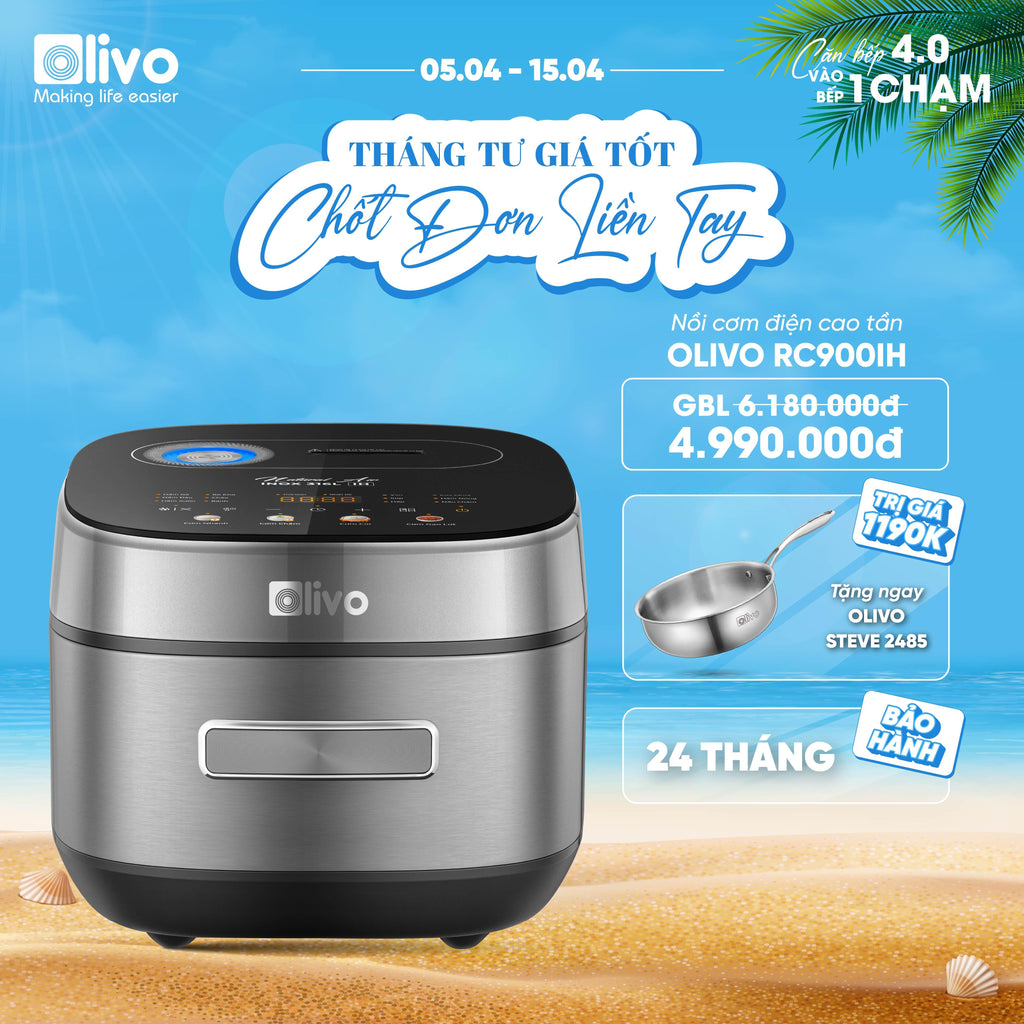 - Nồi cơm điện cao tần OLIVO RC900IH là sự lựa chọn hoàn hảo cho những ai mong muốn nâng tầm chất lượng bữa ăn gia đình. Với công nghệ hiện đại, thiết kế tinh tế và hàng loạt tính năng vượt trội, sản phẩm không chỉ mang lại sự tiện nghi mà còn đảm bảo sức khỏe và trải nghiệm nấu nướng hoàn hảo. Dưới đây là những ưu điểm nổi bật của nồi cơm điện cao tần này.