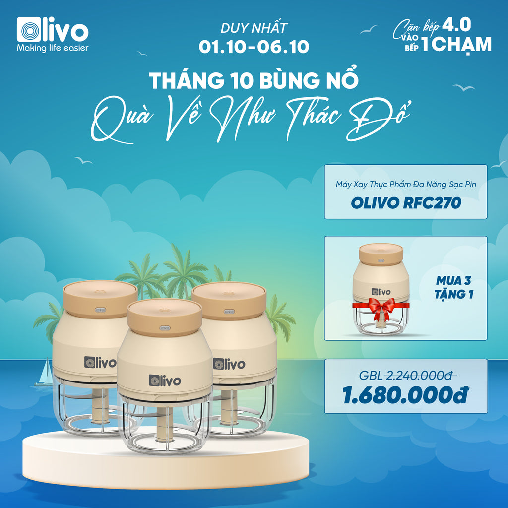 Trong những ngày bận rộn, việc nấu nướng trở nên dễ dàng và nhanh chóng hơn nhờ Máy xay thực phẩm đa năng sạc pin OLIVO RFC270. Có thiết kế nhỏ gọn, tiện dụng trong việc xay những thực phẩm nhỏ, được các chị em phụ nữ yêu thích vì là trợ thủ lý tưởng cho gian bếp hiện đại.